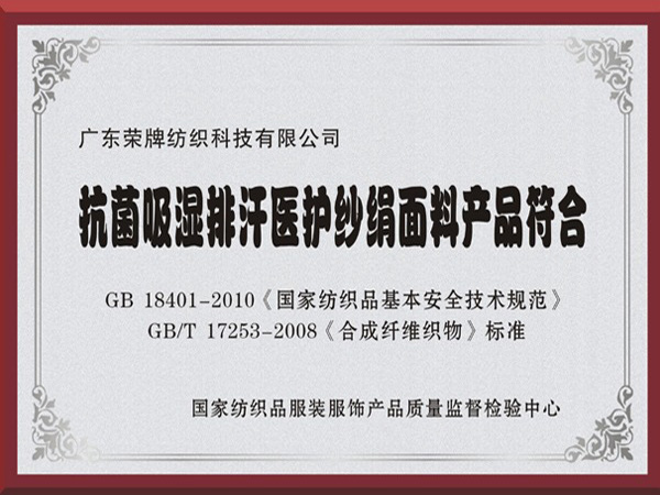 悟空体育抗菌吸湿排汗医护纱绢面料产品符合国家标准